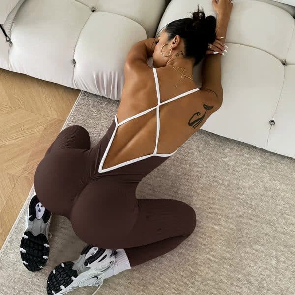 Be the first to review “Brown Women’s Sleeveless Yoga Bodysuit, High-Waisted, Slim-Fit, Size M”