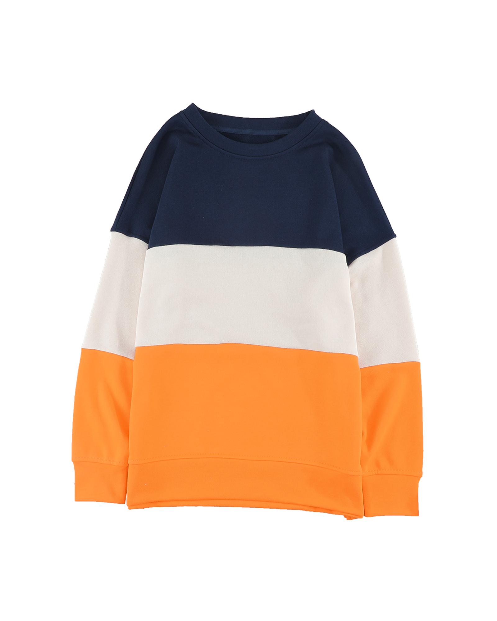- Colorblock Orange Contrast Stitching Sweatshirt