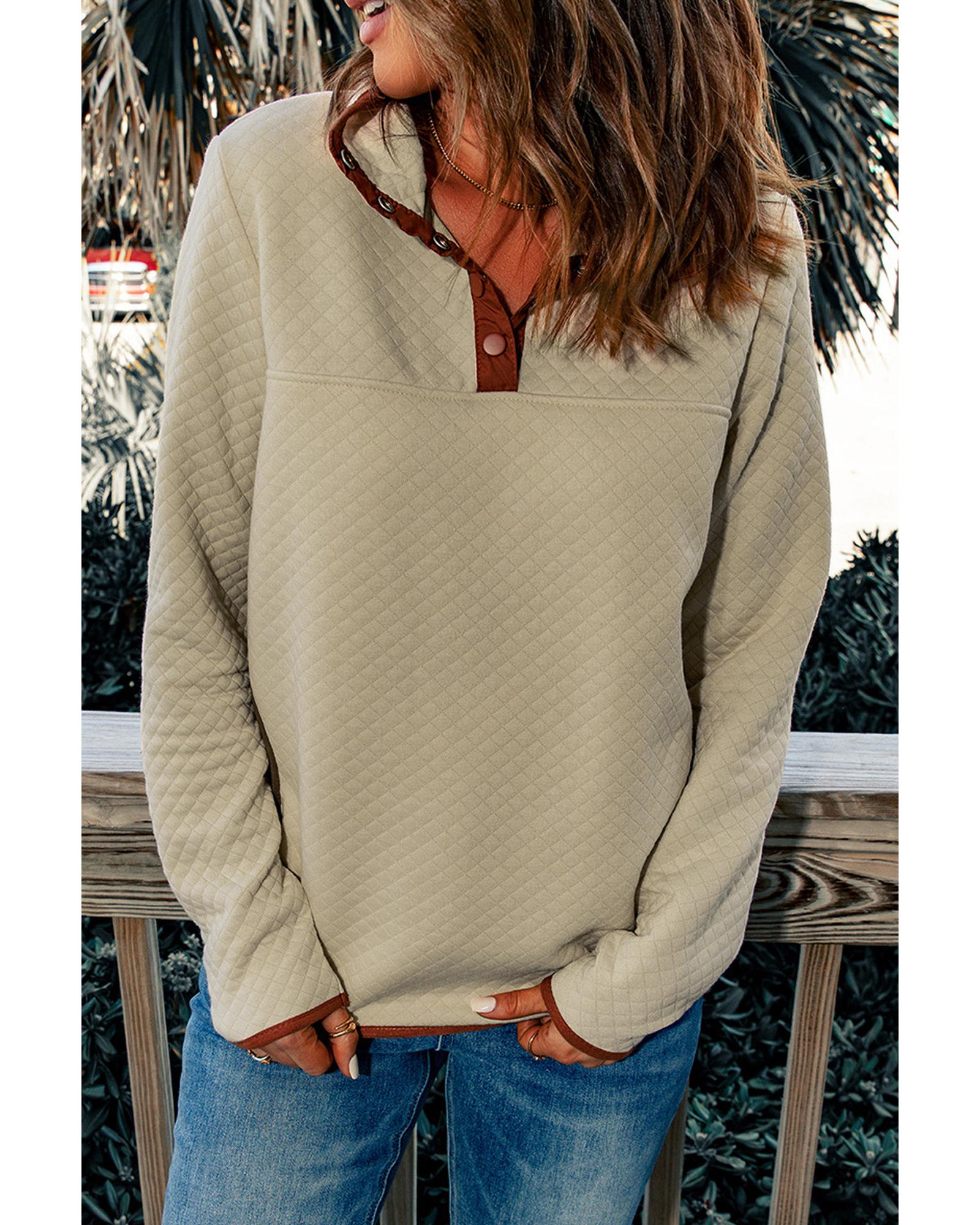 Azura Exchange Contrast Binding Snap Button Geometric Pullover Sweatshirt