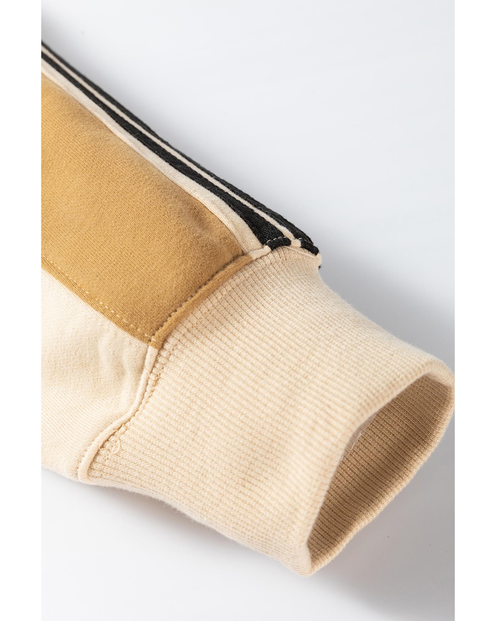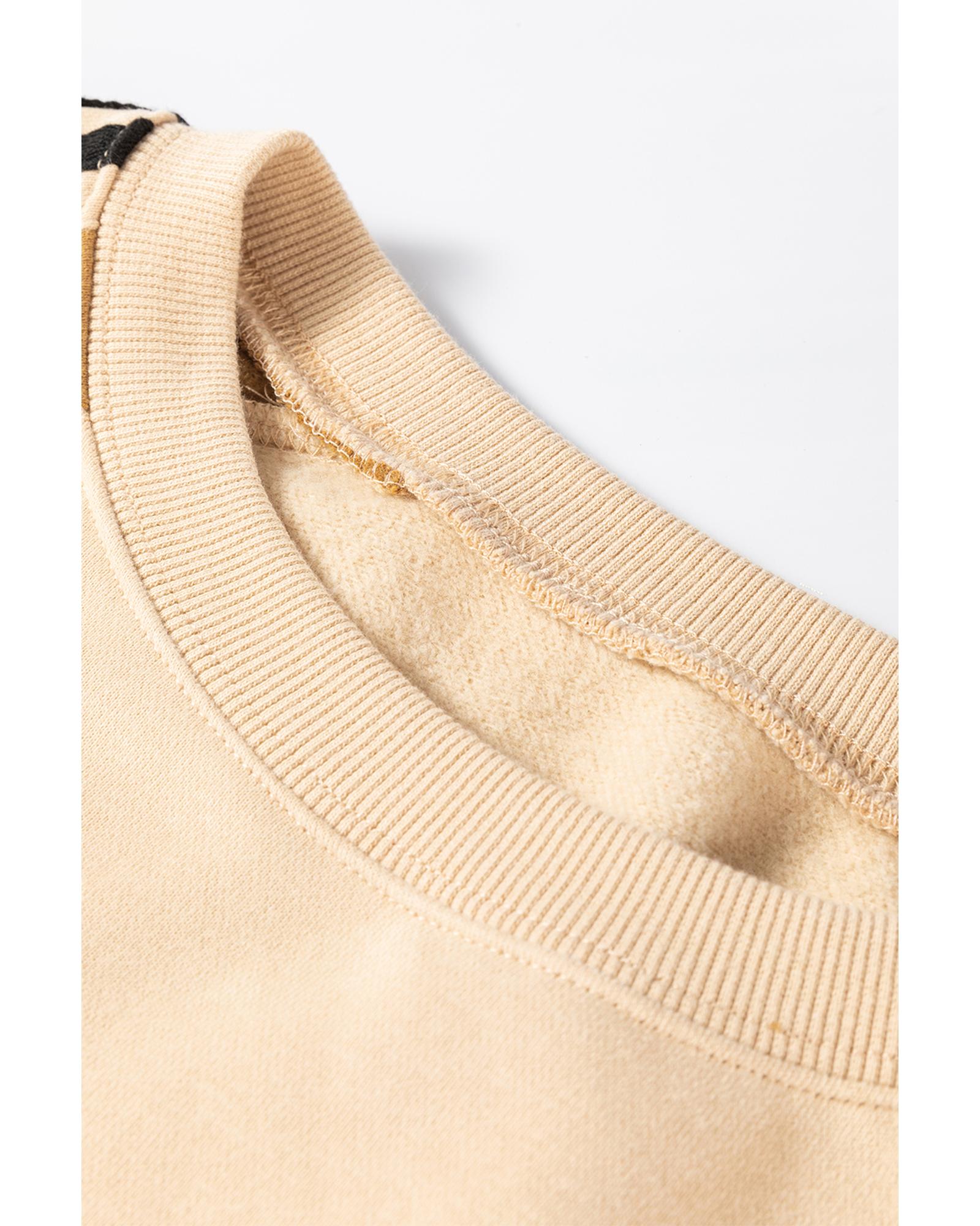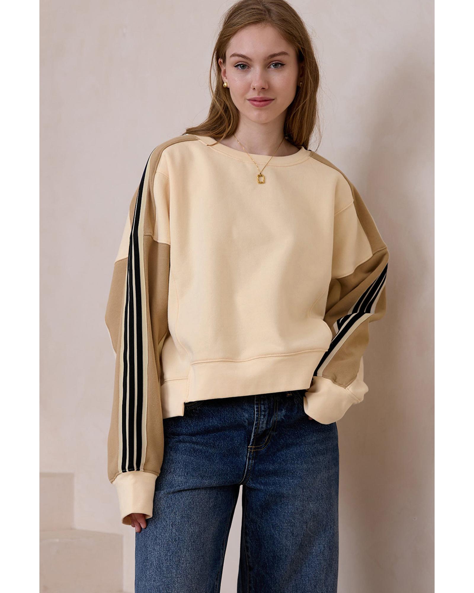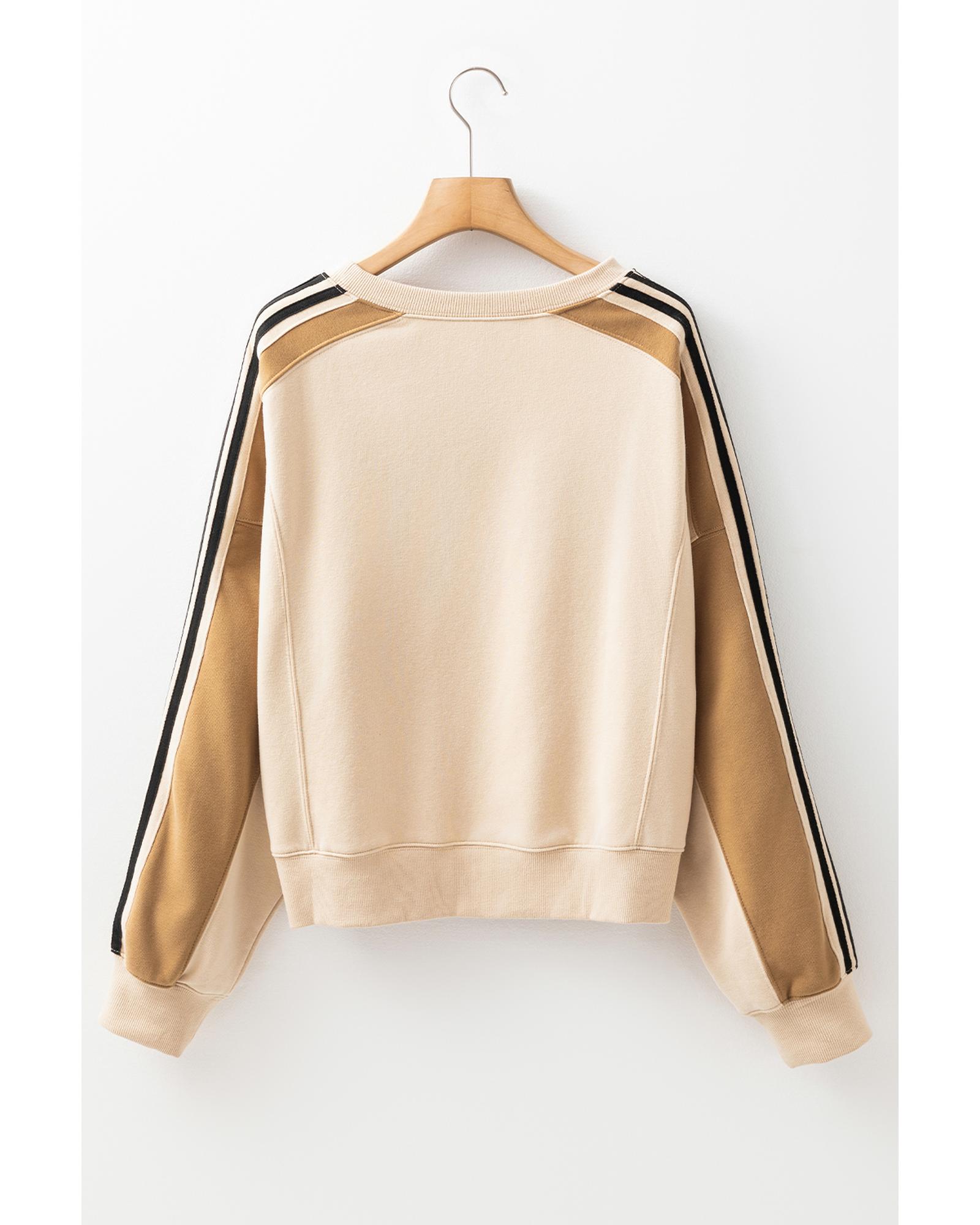 Beige Contrast Striped Patchwork Drop Shoulder Loose Sweatshirt