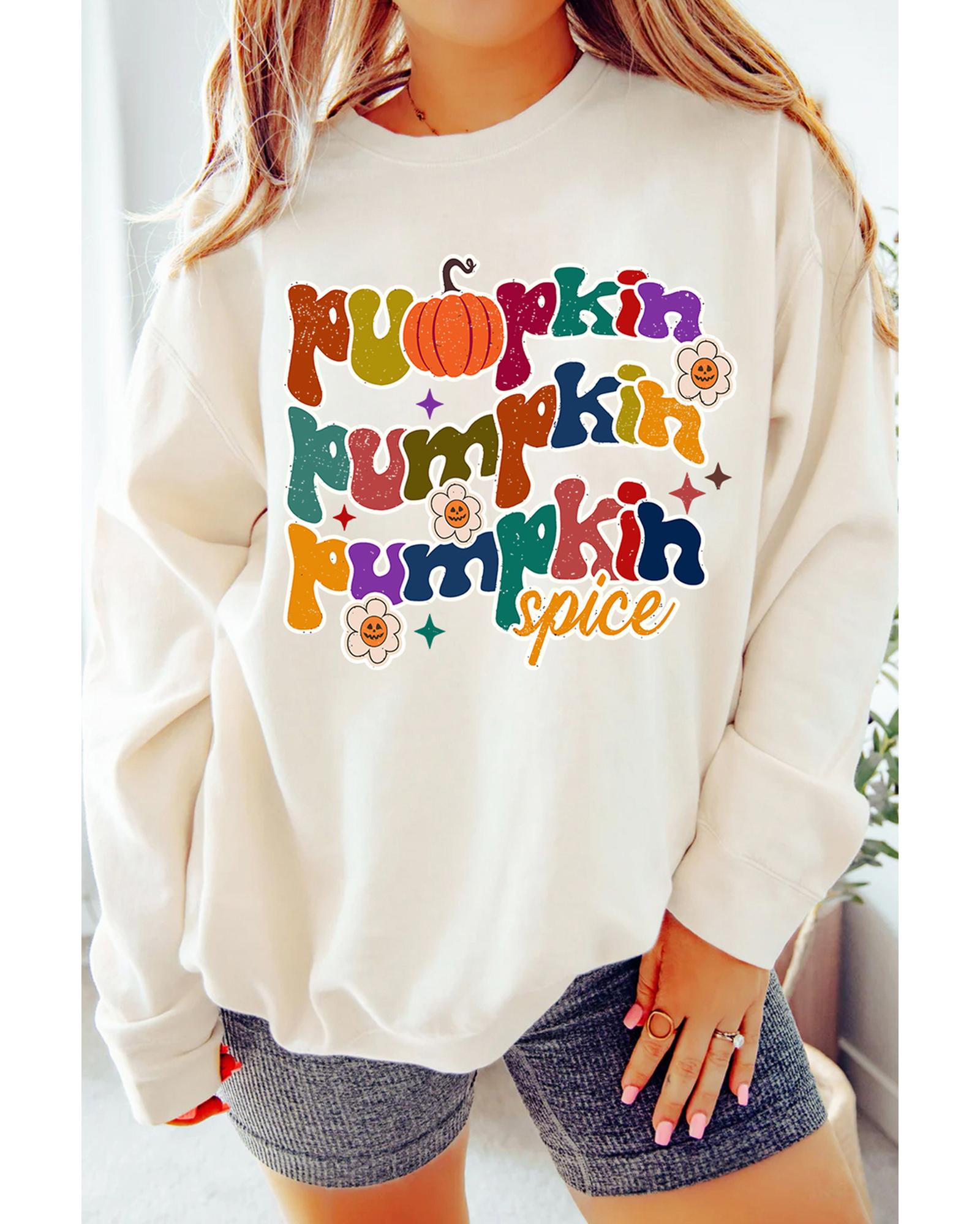Beige Cute Pumpkin Spice Graphic Thanksgiving Sweatshirt