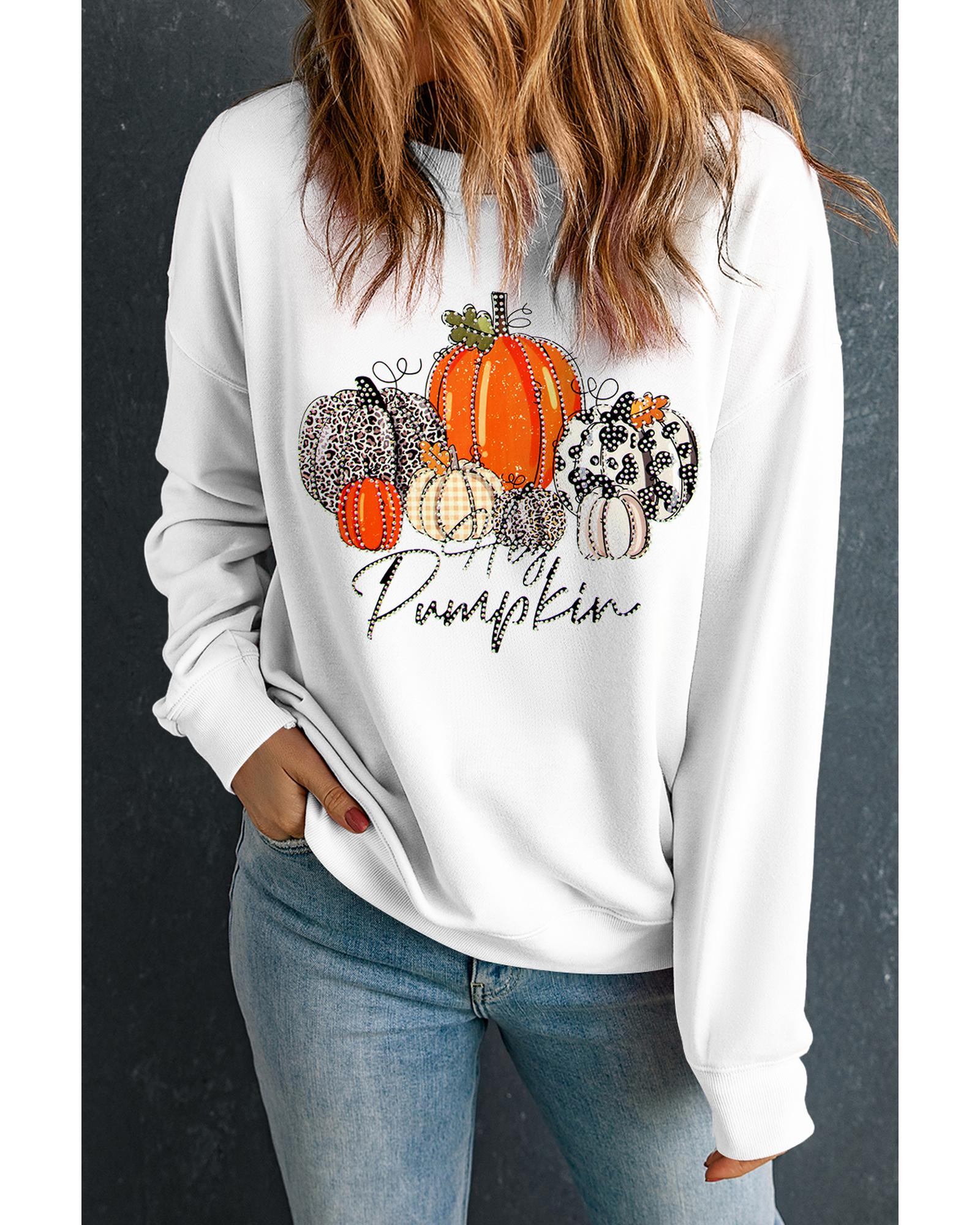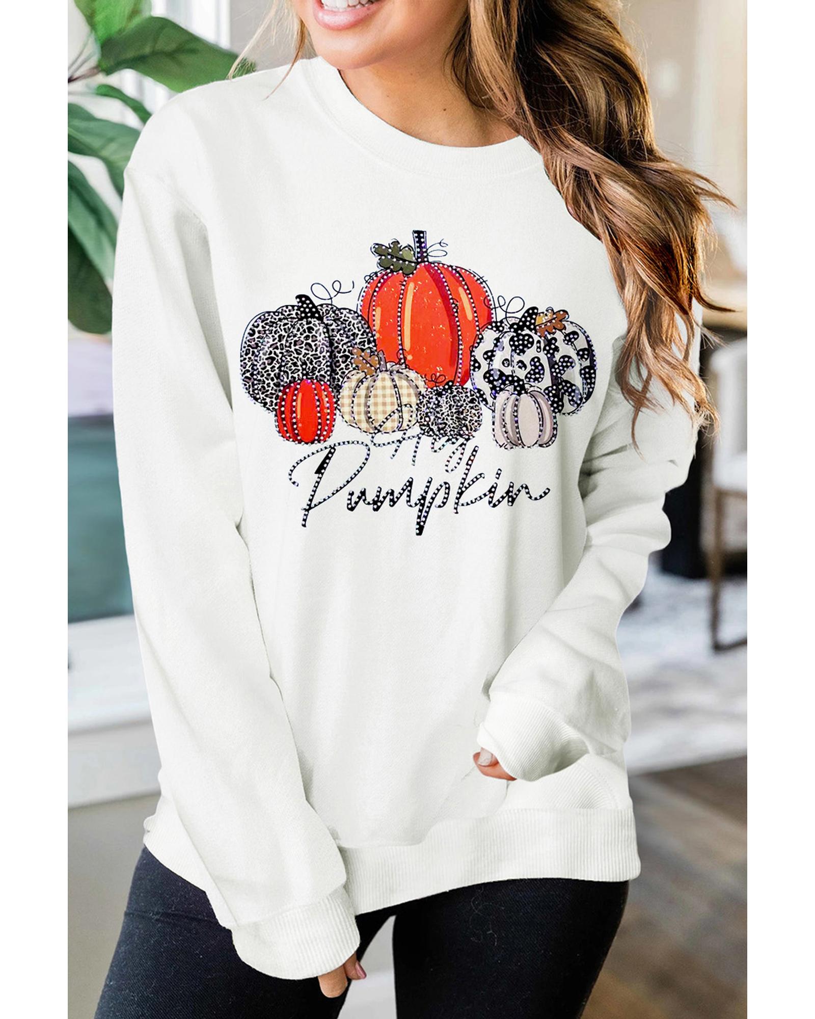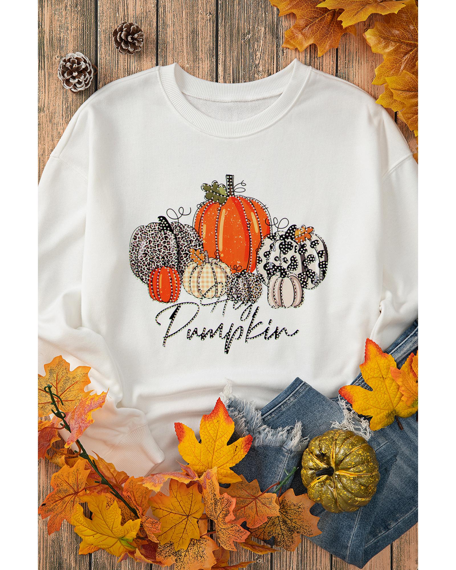 Beige Rhinestone Pumpkin Graphic Crewneck Thanksgiving Sweatshirt