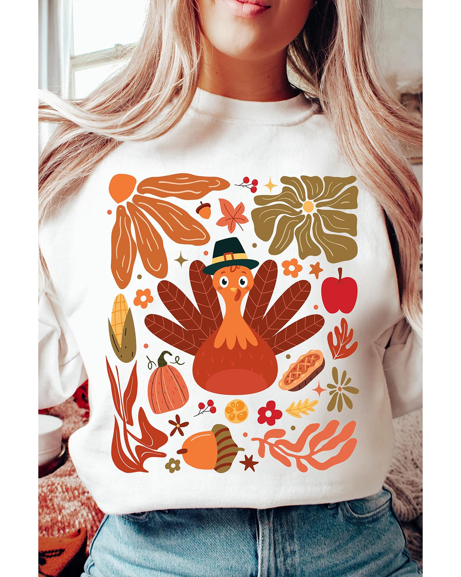 - Beige Thanksgiving Fall Vibe Graphic Crew Neck Sweatshirt