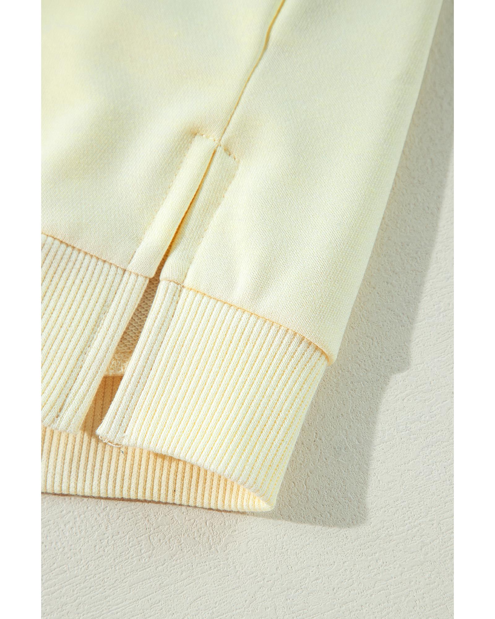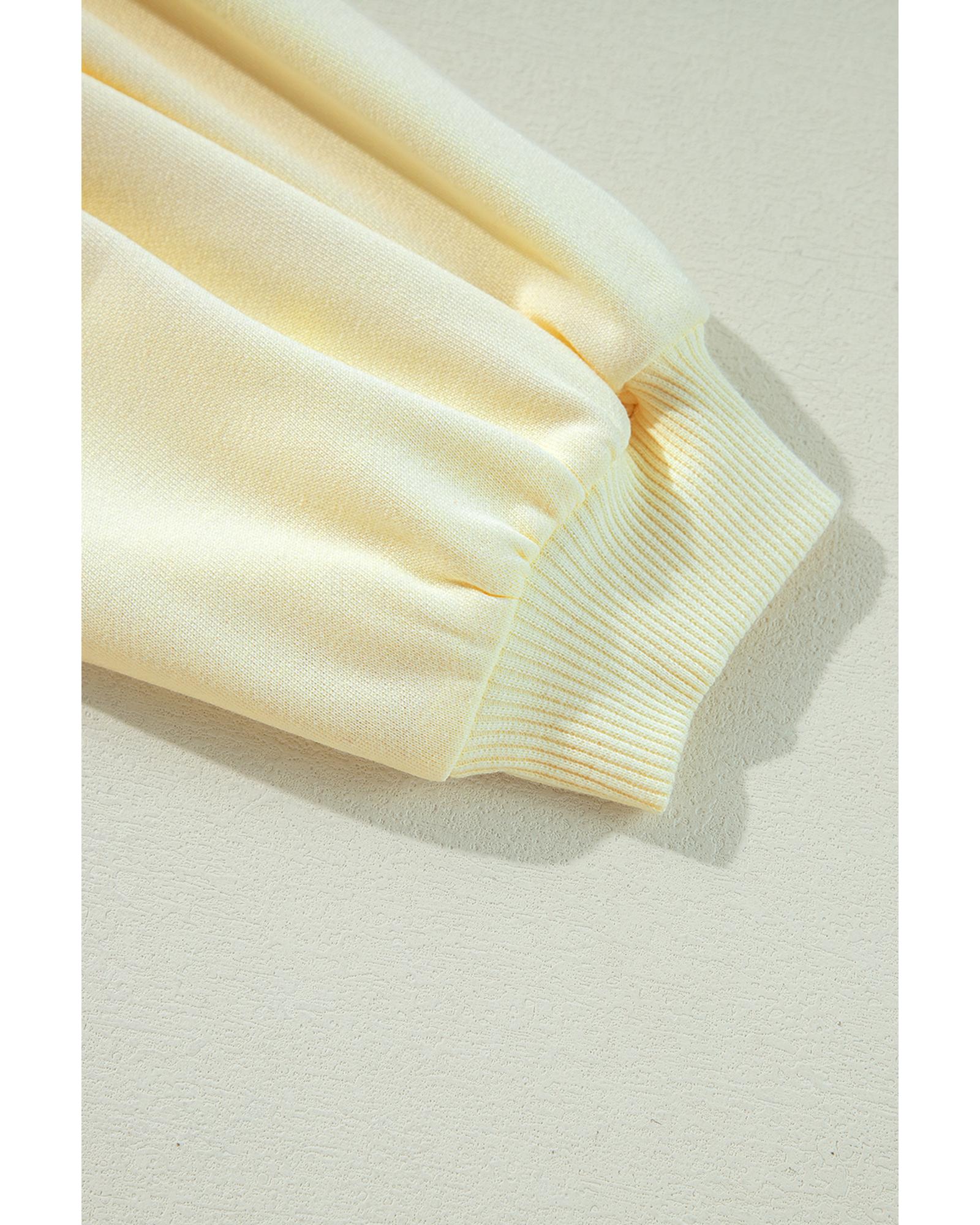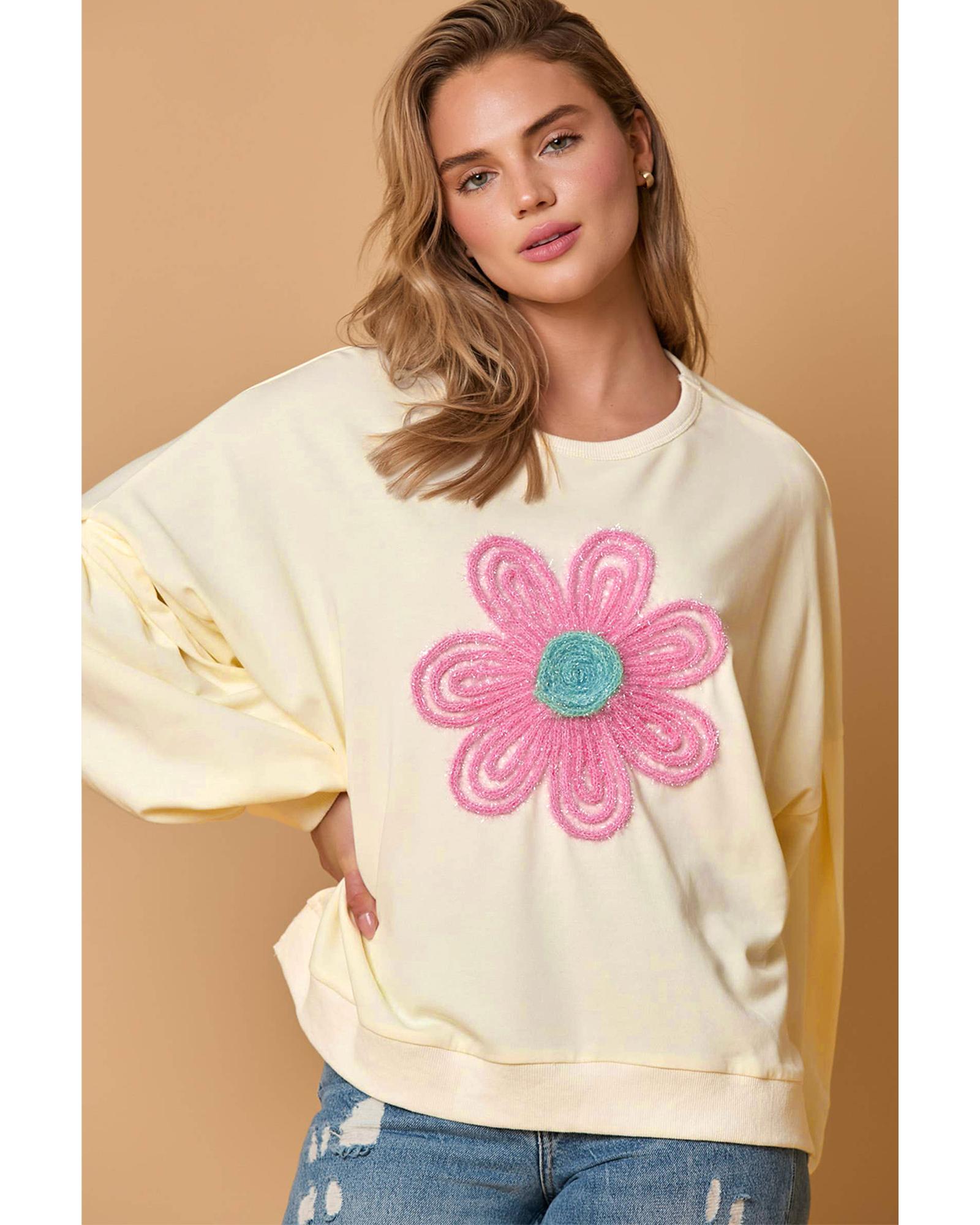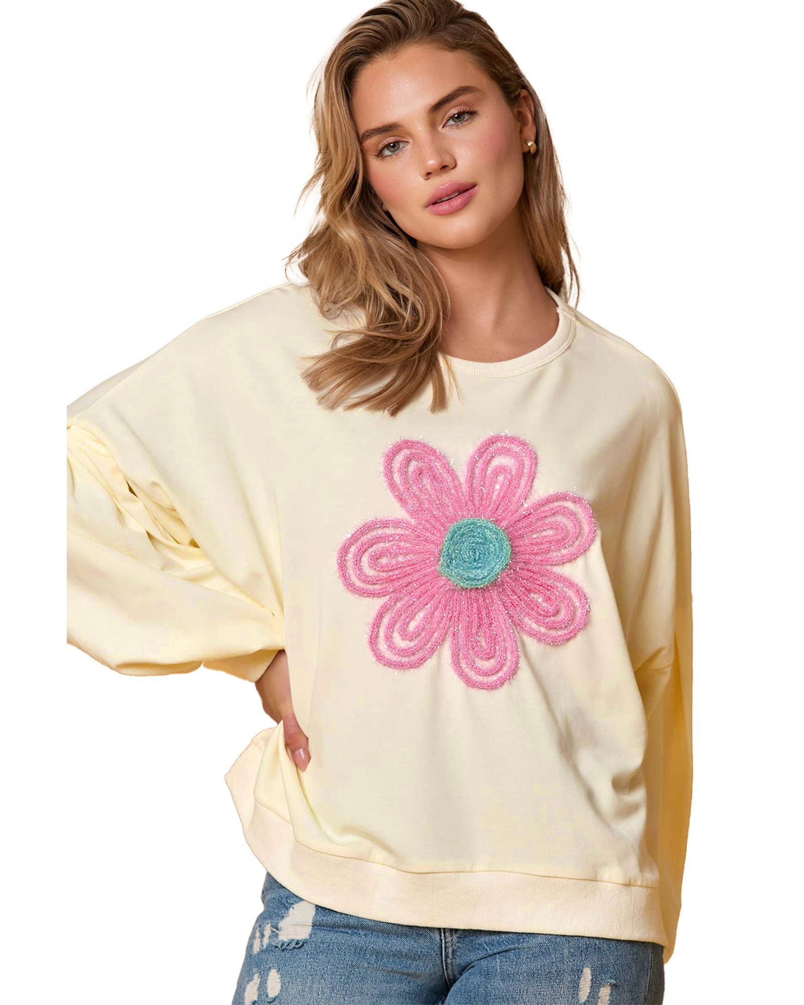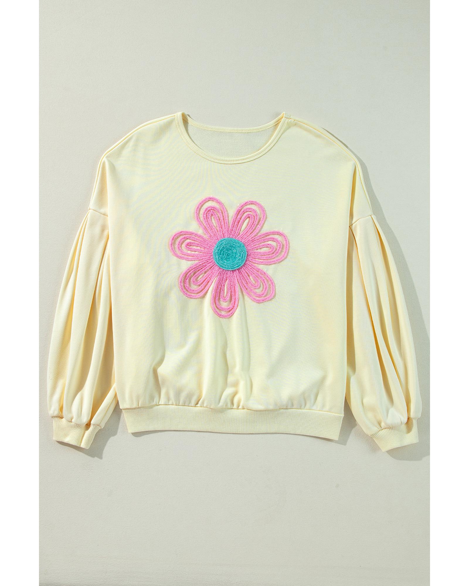 Beige Tinsel Flower Dropped Puff Sleeve Sweatshirt