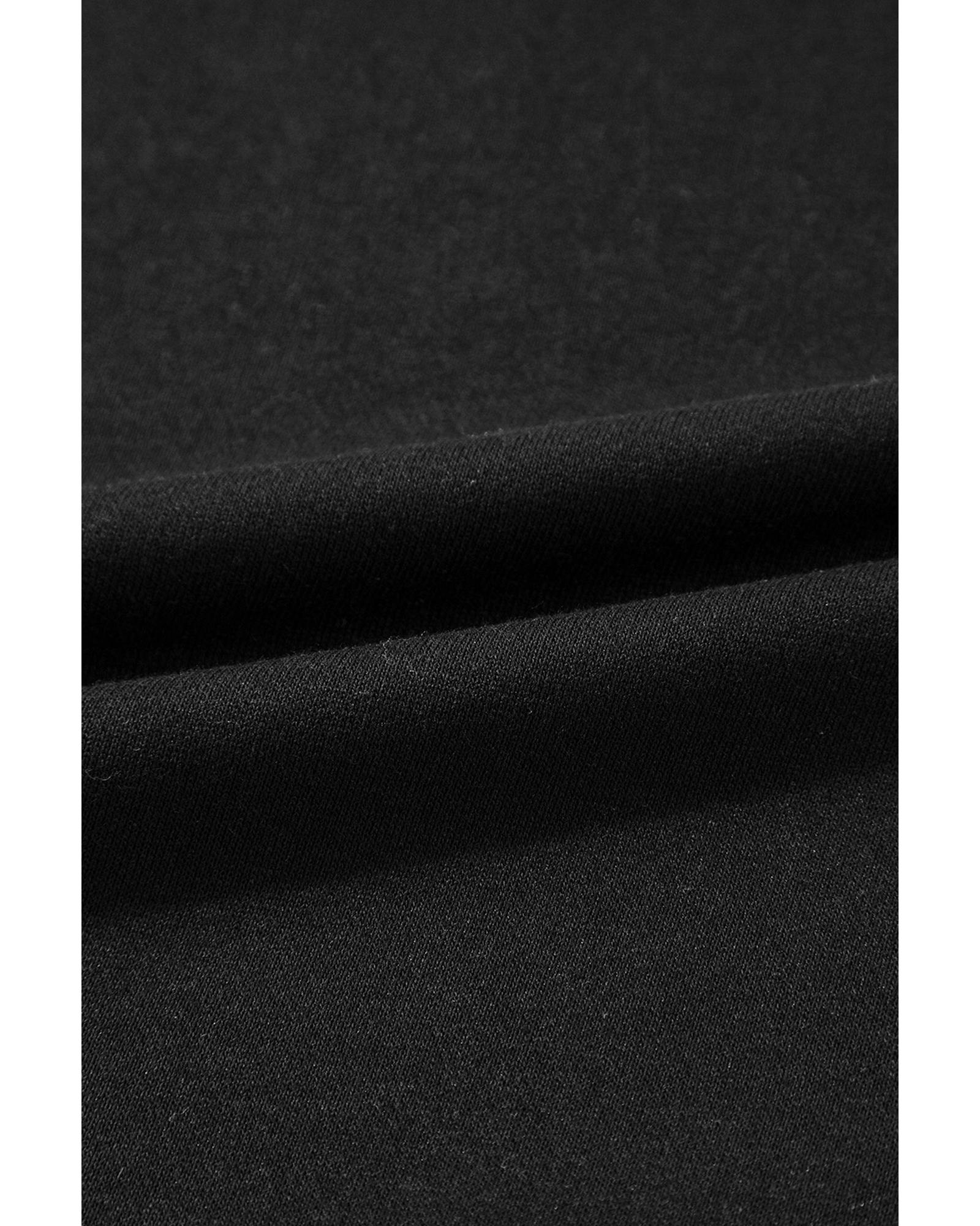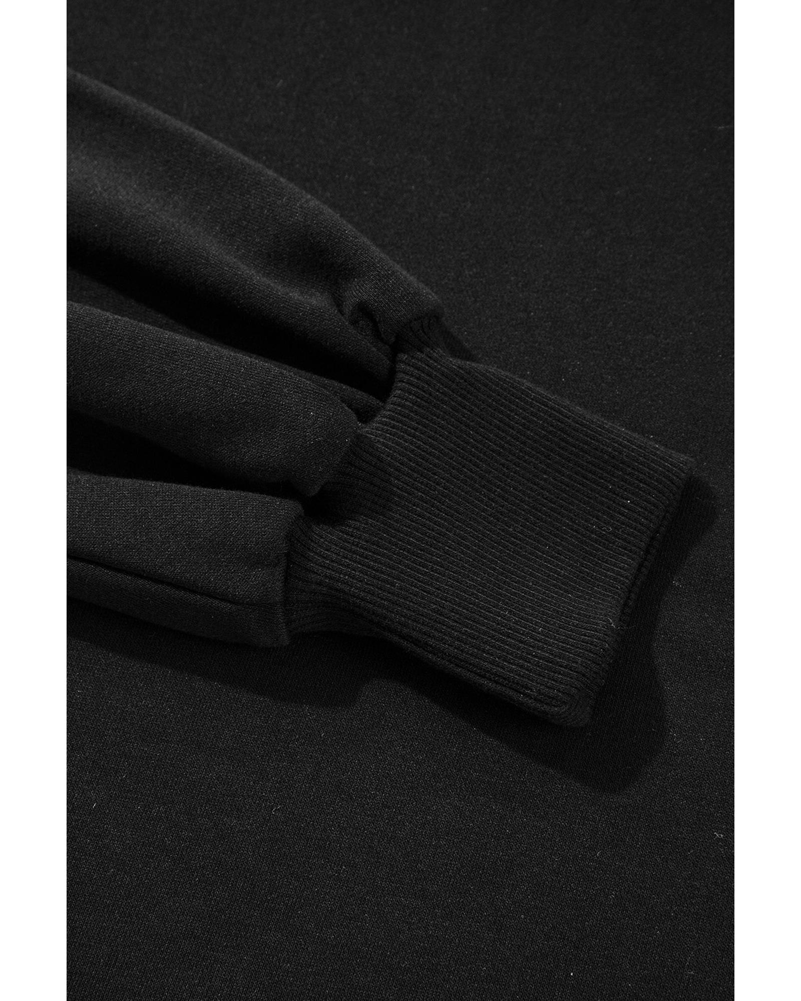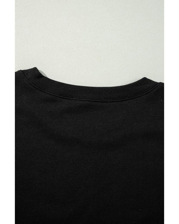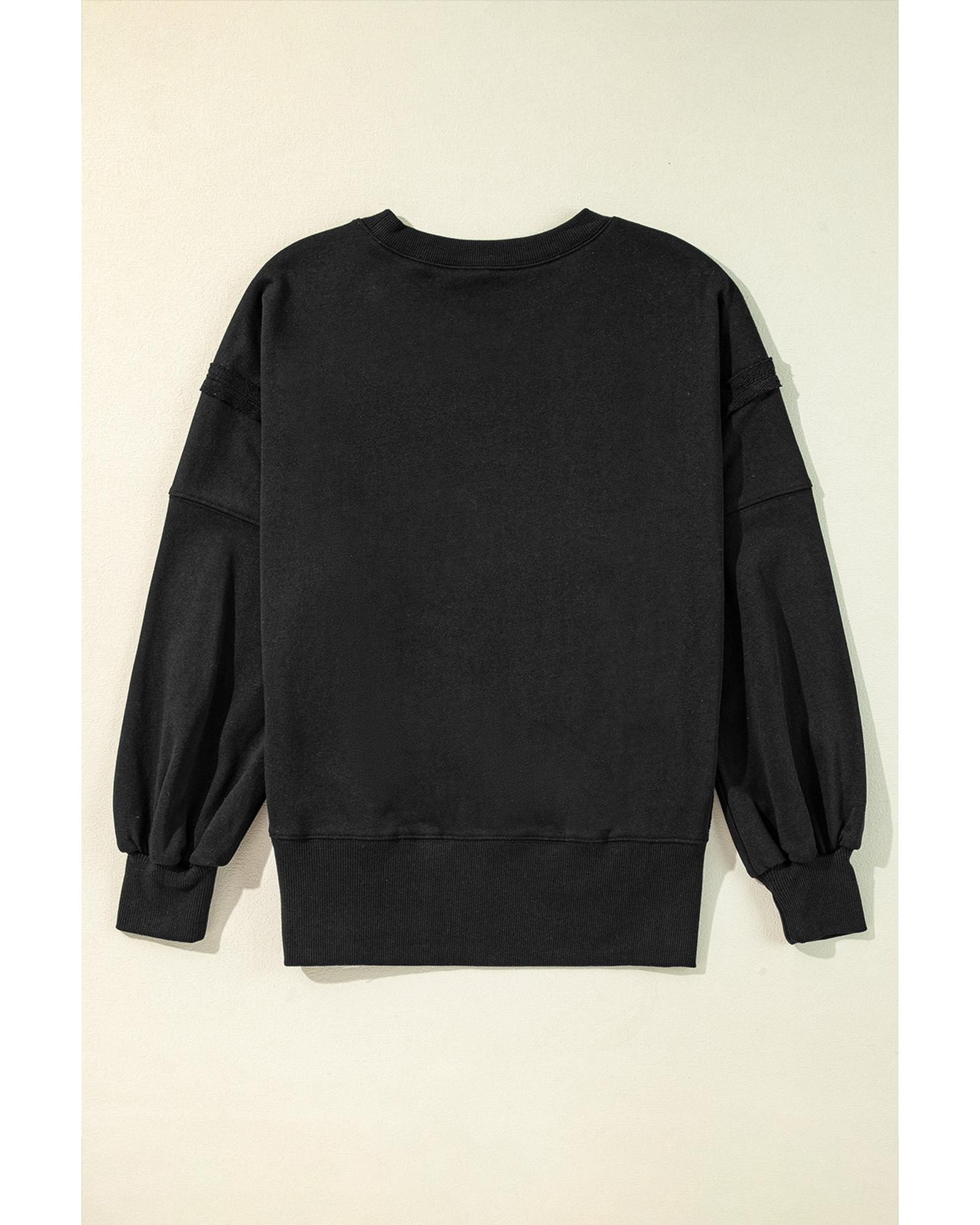 Black Exposed Seam Drop Shoulder Round Neck Sweatshirt with Slits