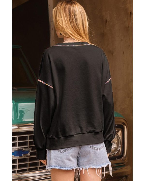 - Black Sequin Pumpkin Face Graphic Exposed Seam Halloween Sweatshirt