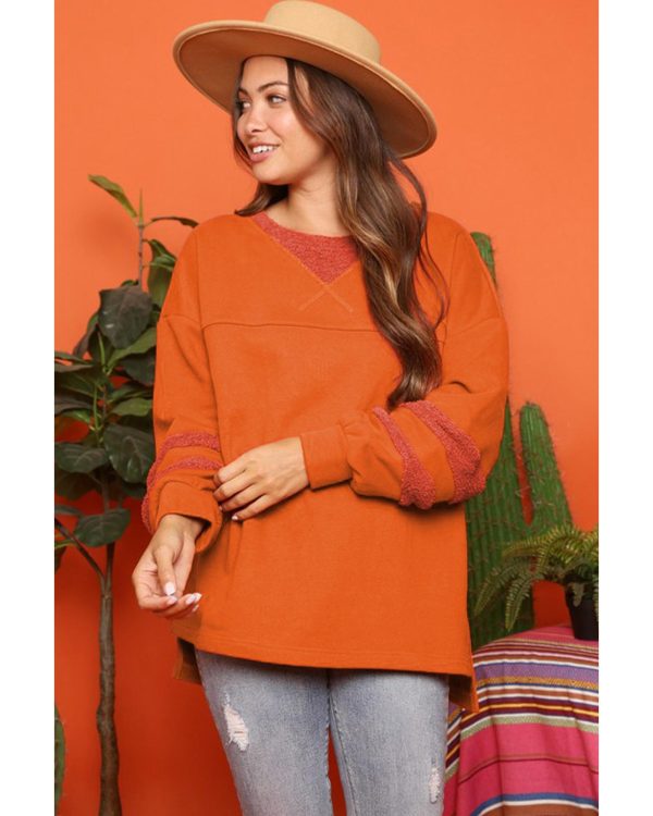 Carrot Fleece Patchwork Side Slits High Low Sweatshirt