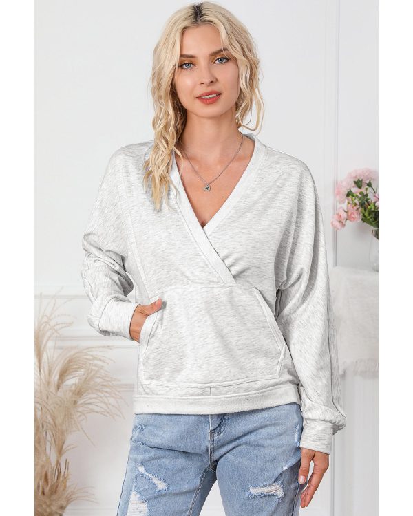 Gray Contrast Trim V Neck Wrap Sweatshirt with Pocket