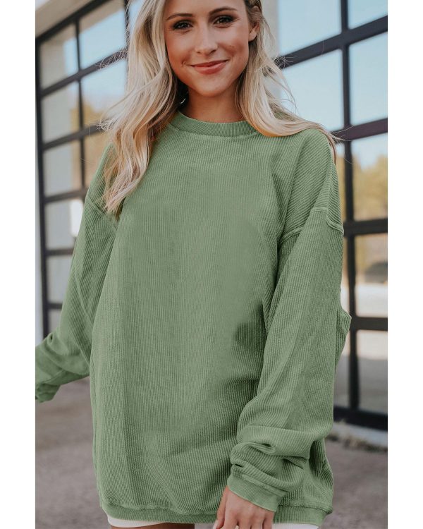 • Luxurious Green Ribbed Corded Oversized Sweatshirt