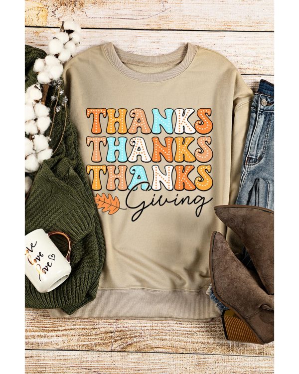 - Khaki THANKS giving Leaves Printed Drop Shoulder Sweatshirt