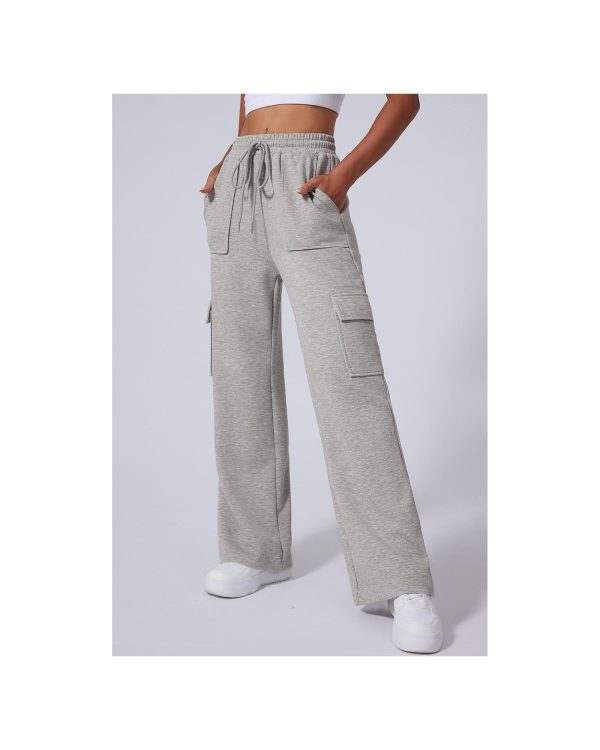 Light Grey Multi Pockets Lace-up High Waist Wide Leg Workout Pants