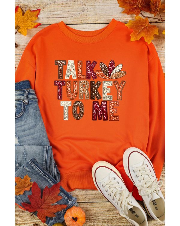 - Orange TALK TURKEY TO ME Heat Transfer Printing Graphic Thanksgiving Holiday Sweatshirt