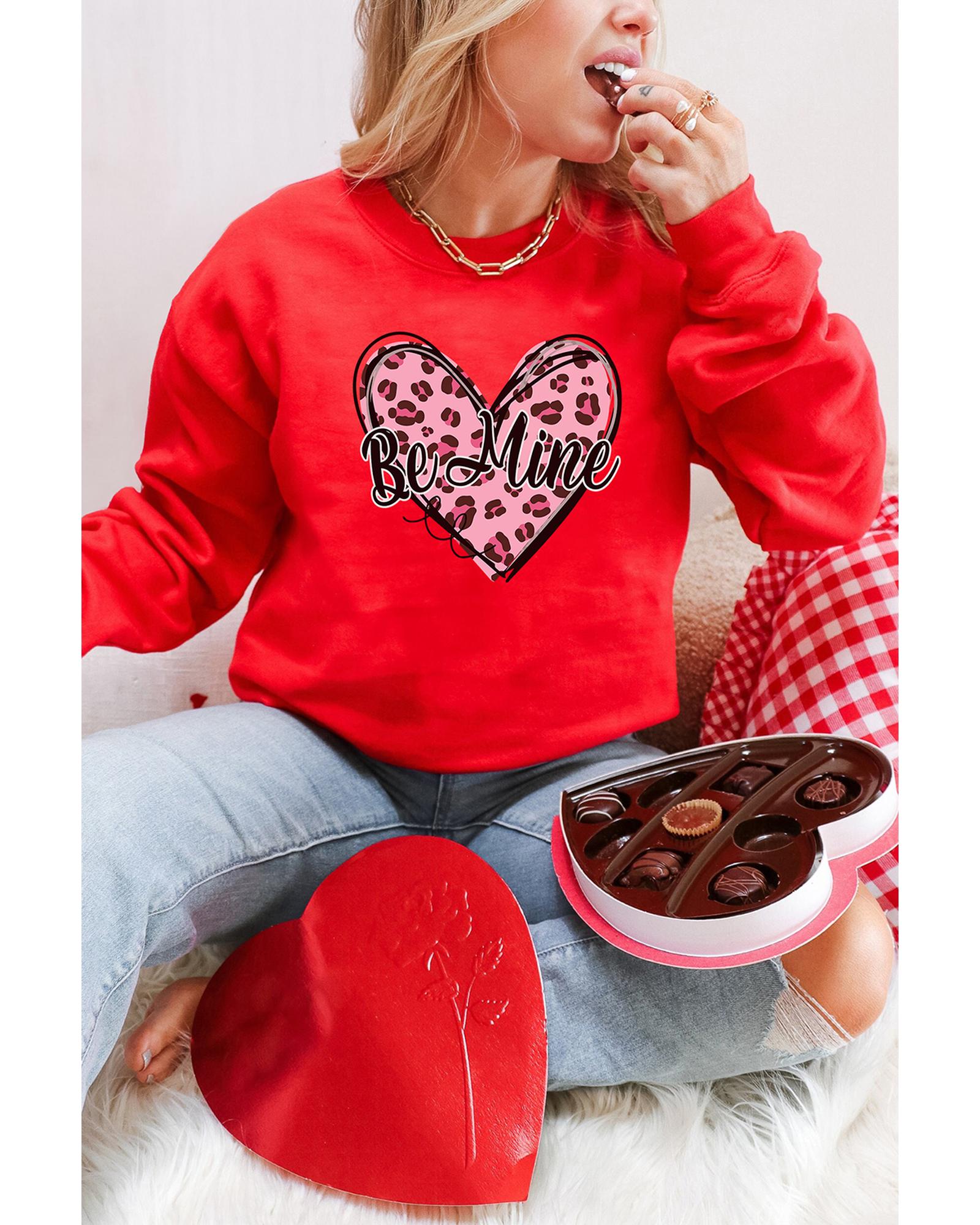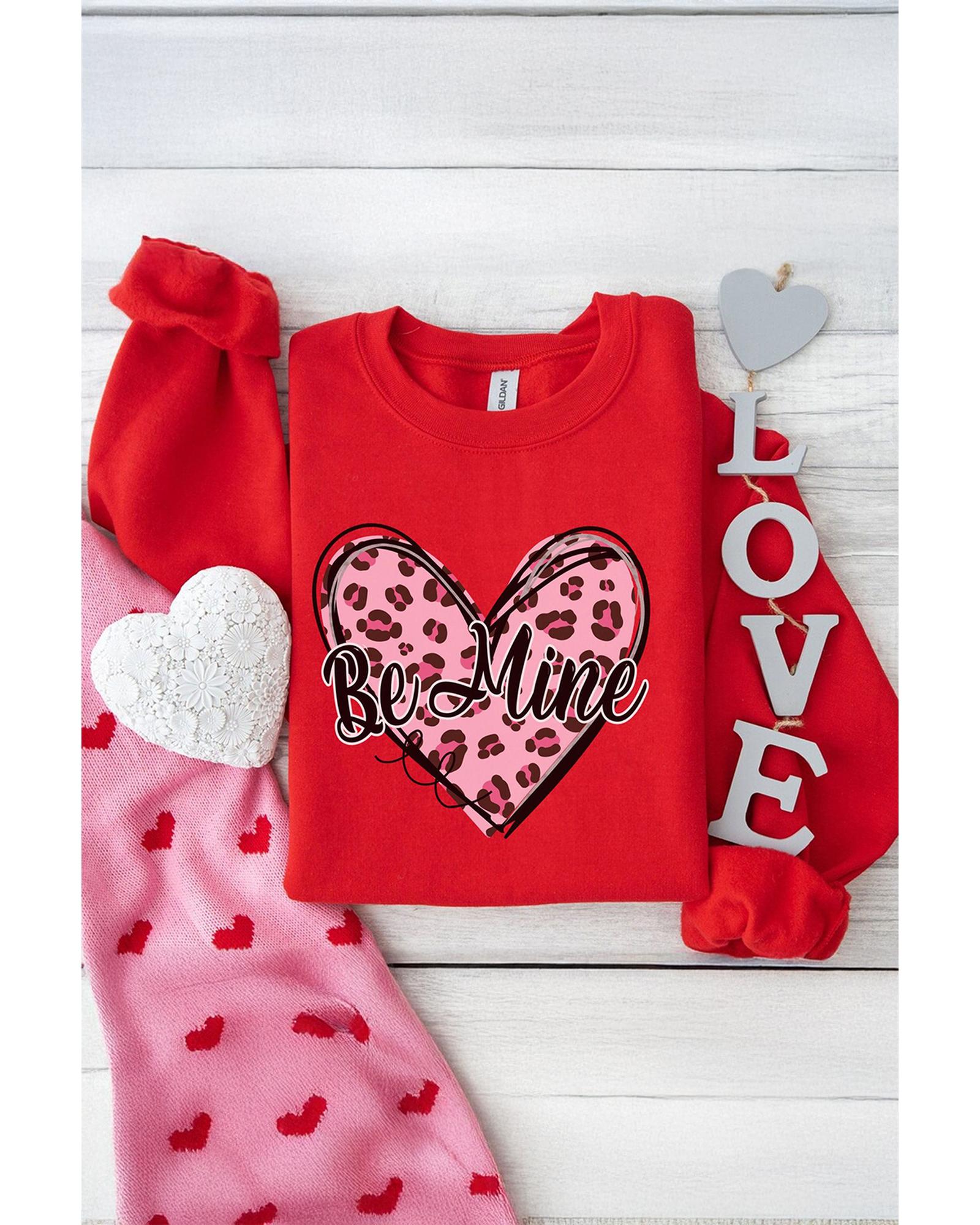 - Red Be Mine Leopard Heart Printed Sweatshirt