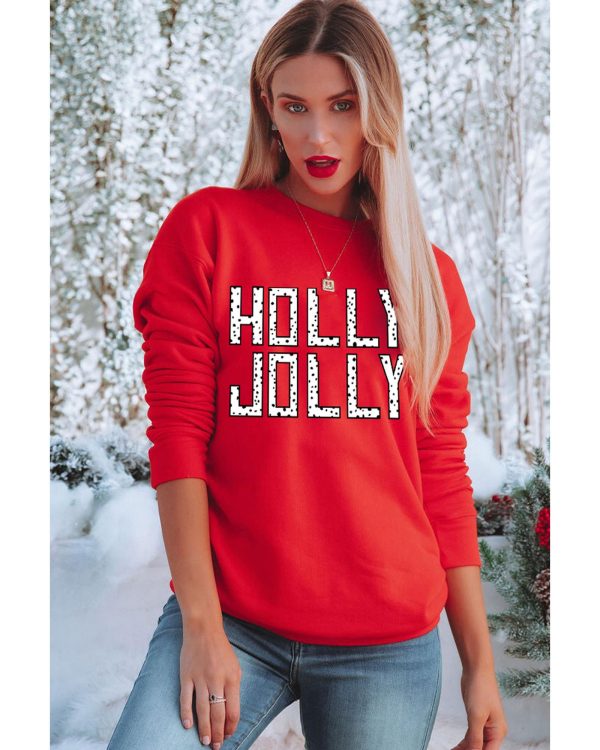 Red HOLLY JOLLY Dotty Letter Graphic Christmas Sweatshirt