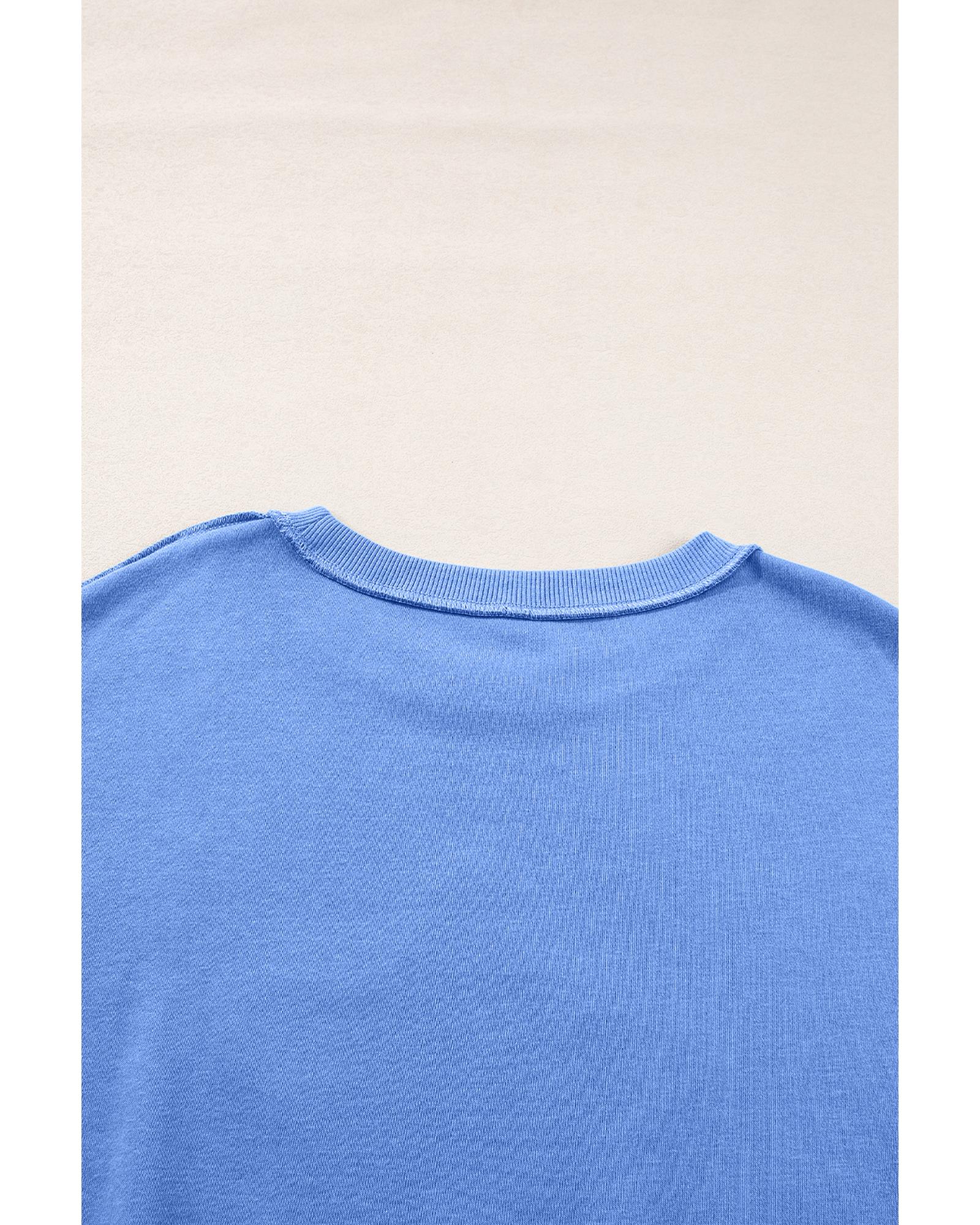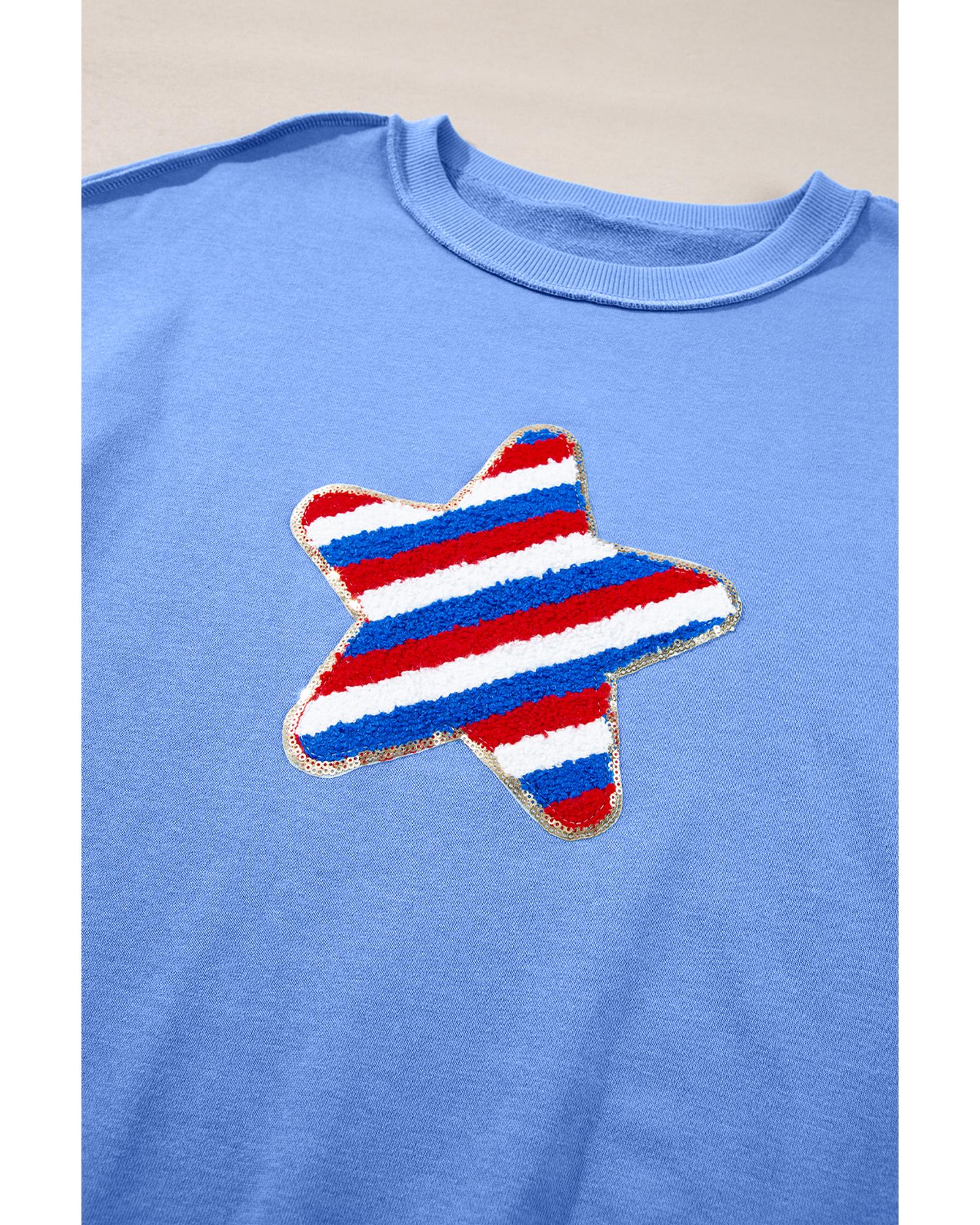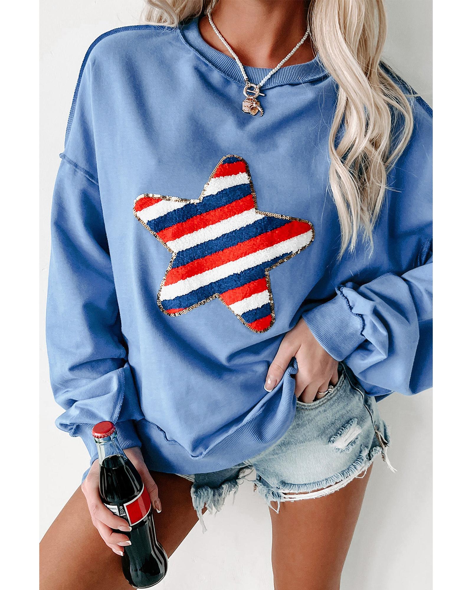 • Sky Blue Sequin Trim Embroidered Star USA Pattern Sweatshirt