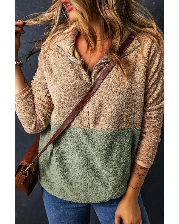 Be the first to review “Smoke Gray Two Tones Color Block Half Zip Fleece Sweatshirt”