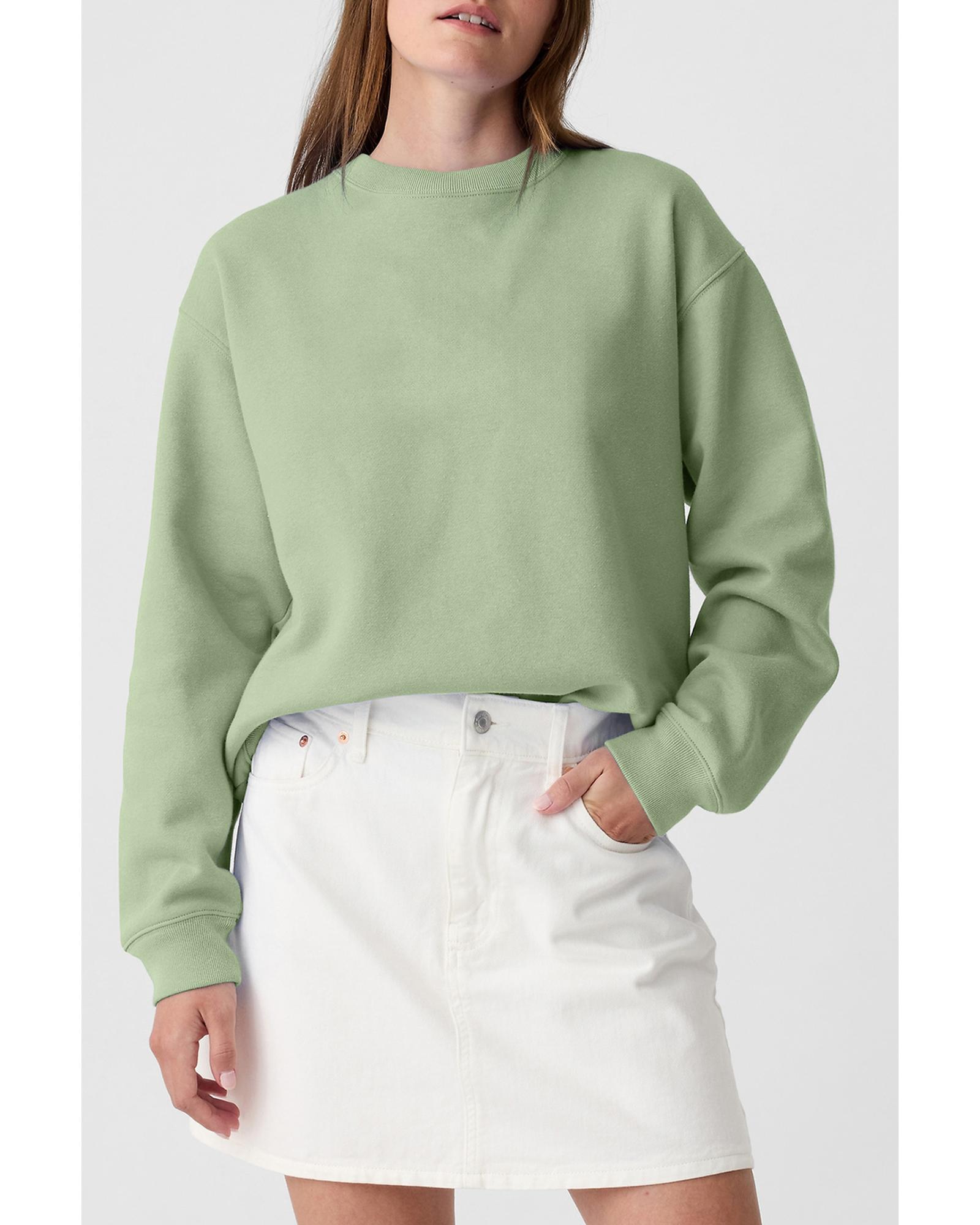 - Smoke Green Plain Drop Shoulder Crewneck Pullover Sweatshirt