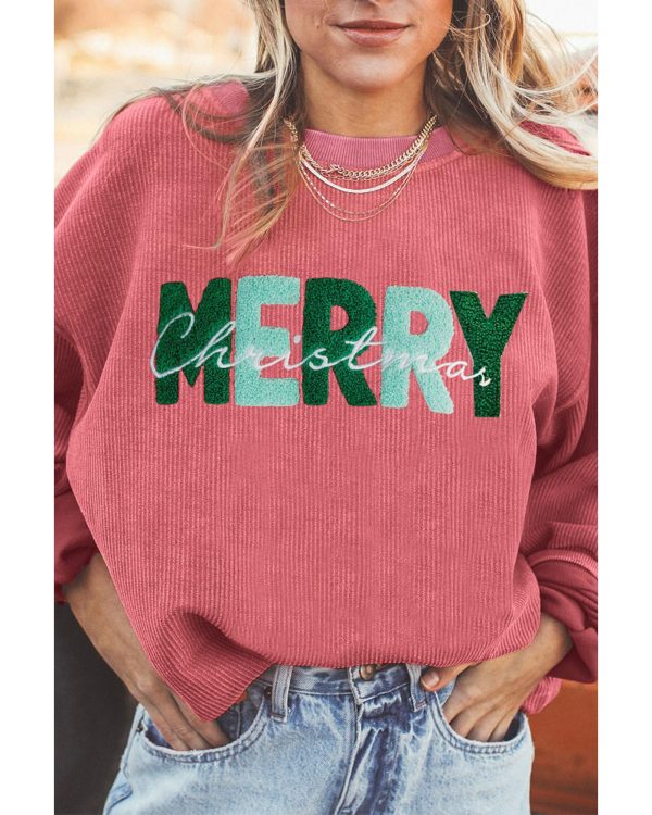 - Strawberry Pink MERRY Christmas Corded Pullover Sweatshirt