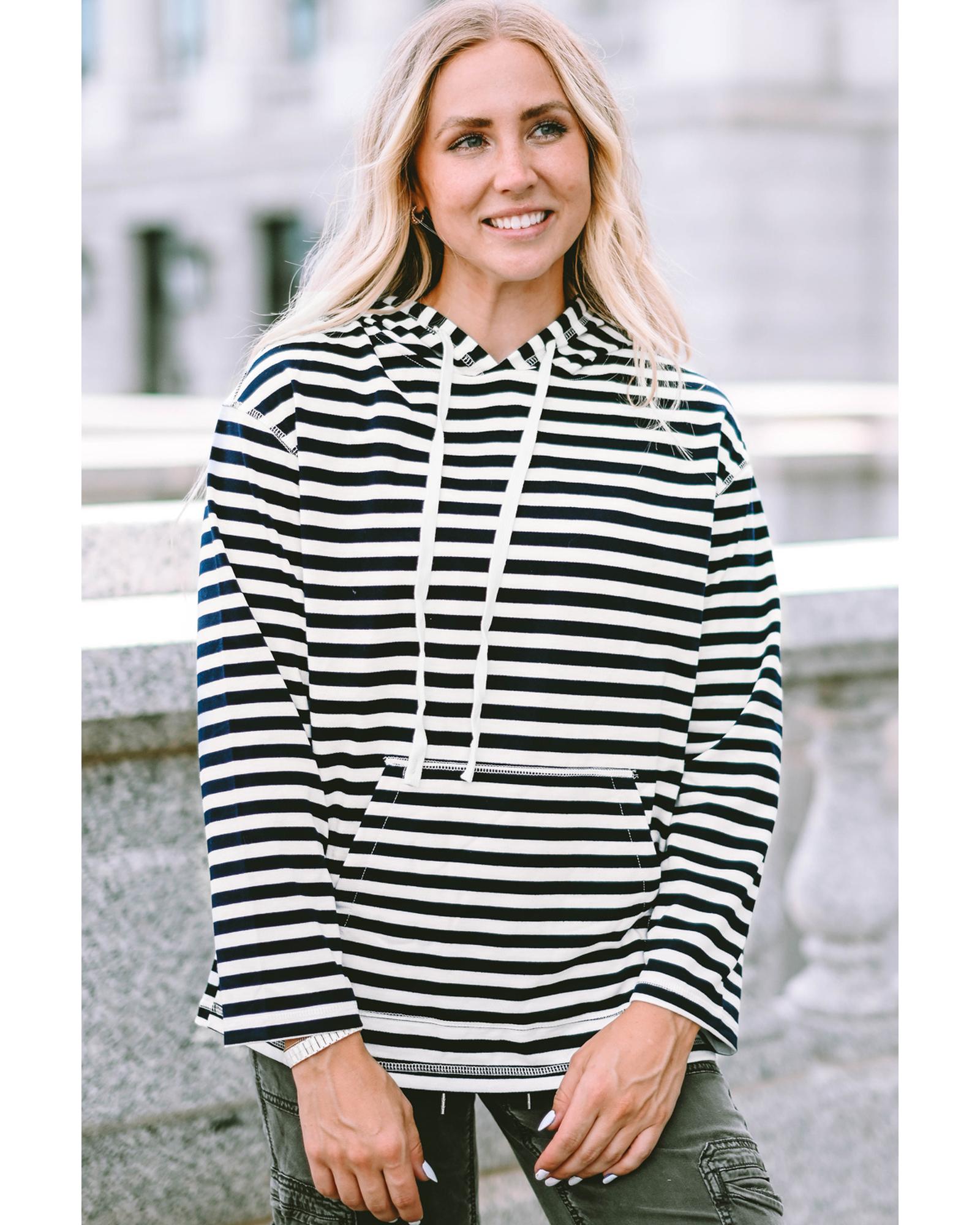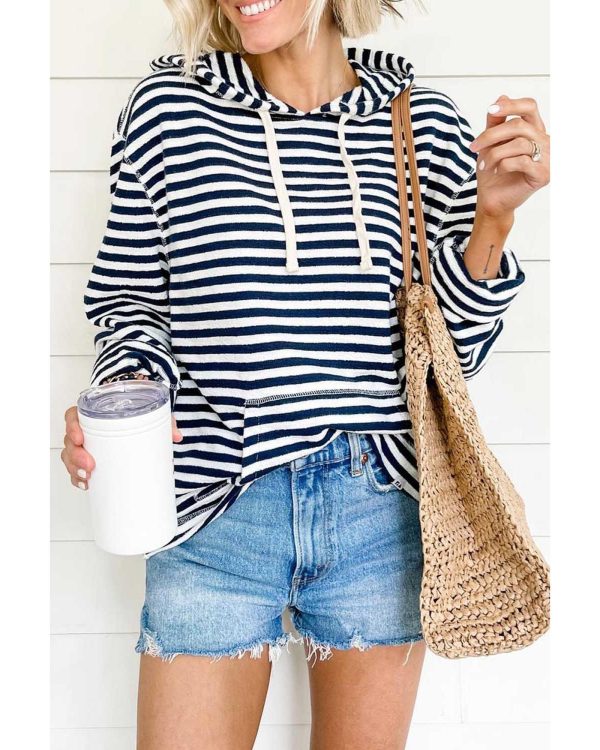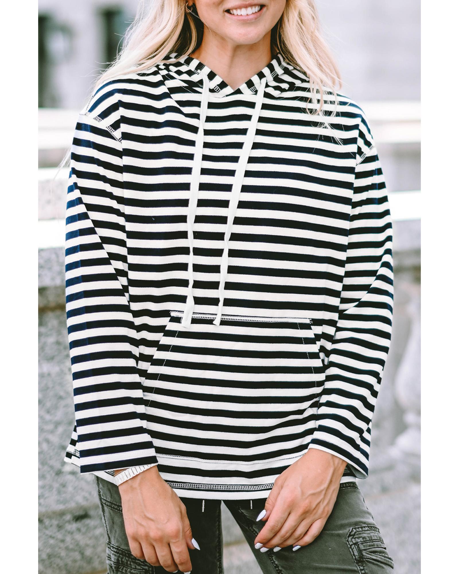 Stripe Kangaroo Pocket Drawstring Hoodie