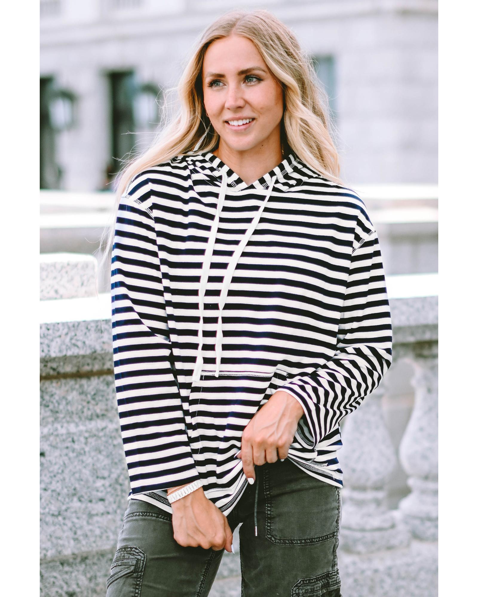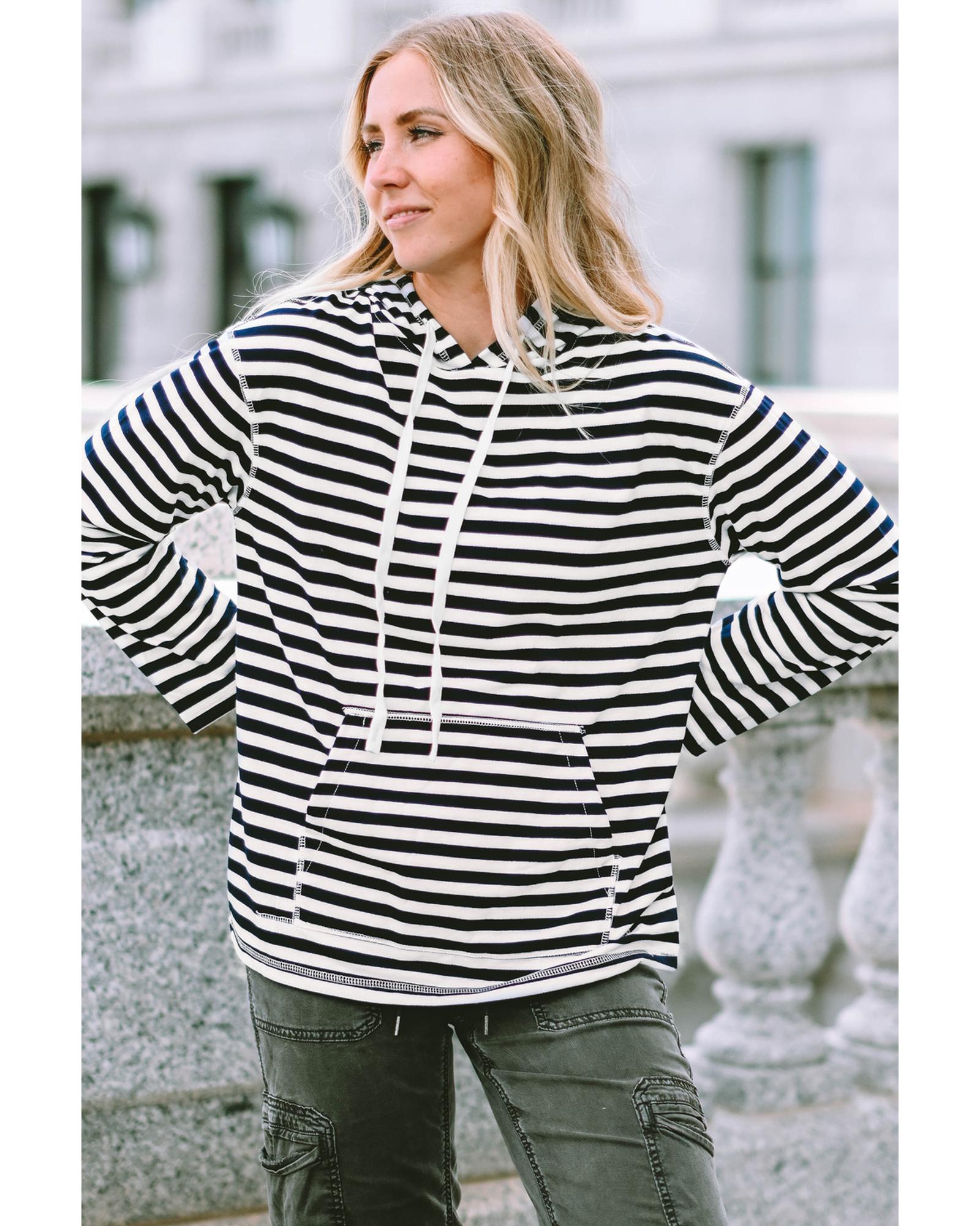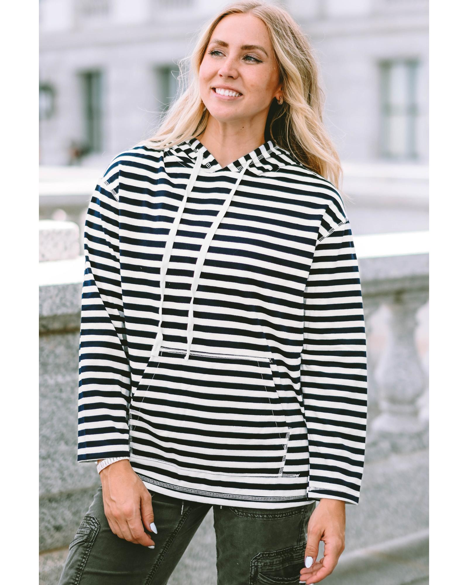 Stripe Kangaroo Pocket Drawstring Hoodie