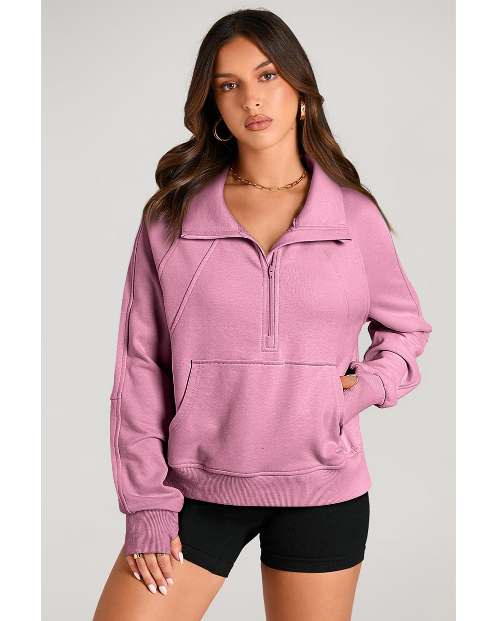 Valerian Quarter Zip Stand Neck Kangaroo Pocket Sweatshirt