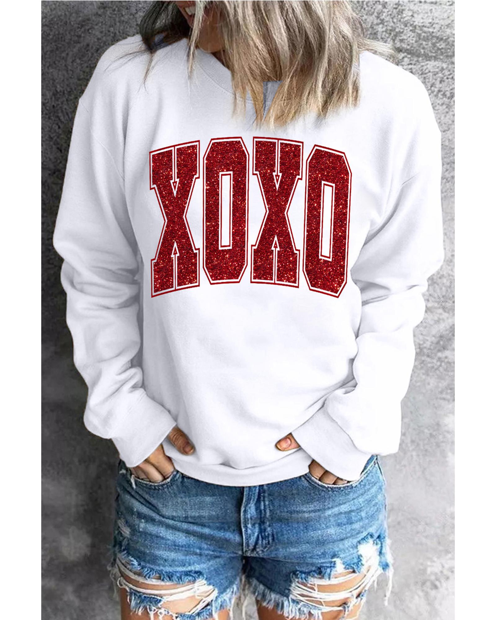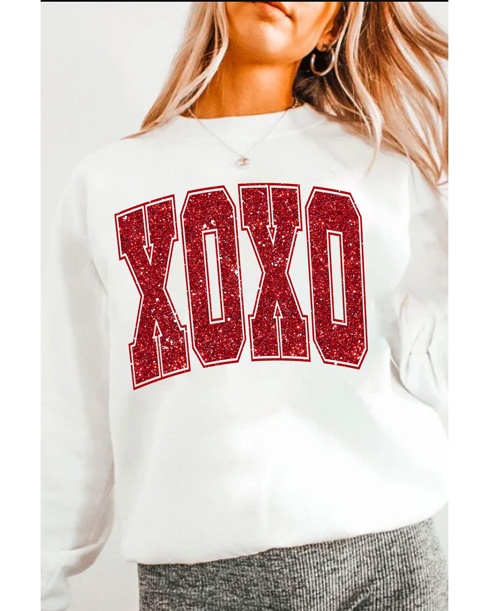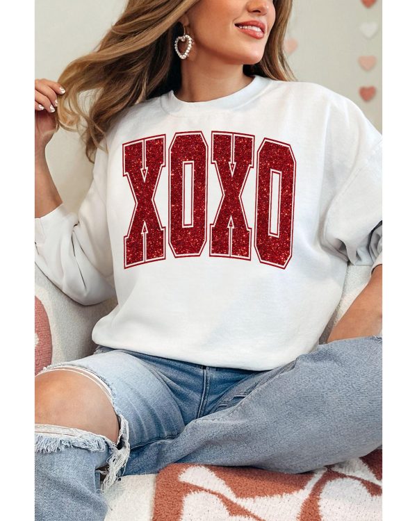 White Glitter XOXO Graphic Crewneck Valentines Pullover Sweatshirt