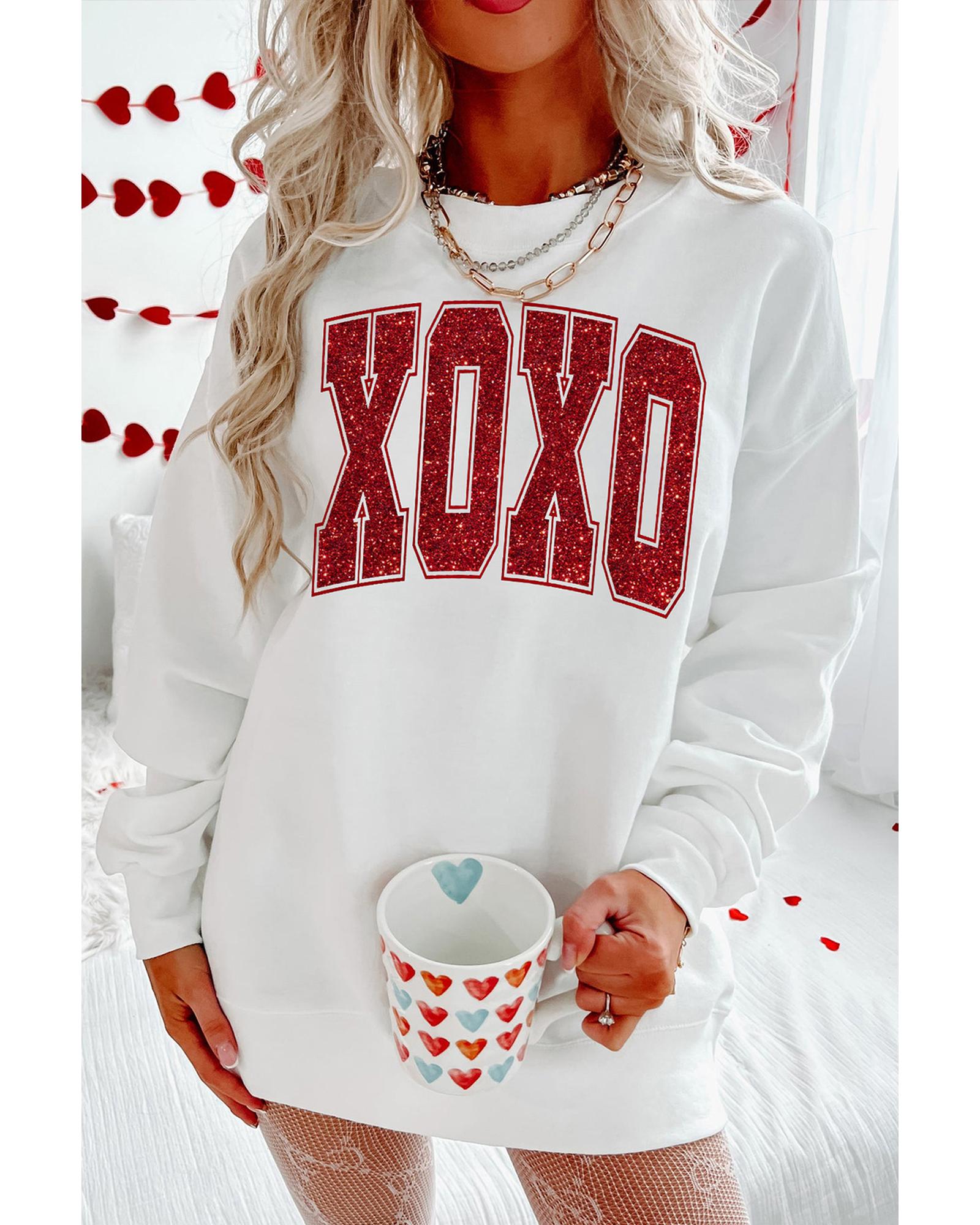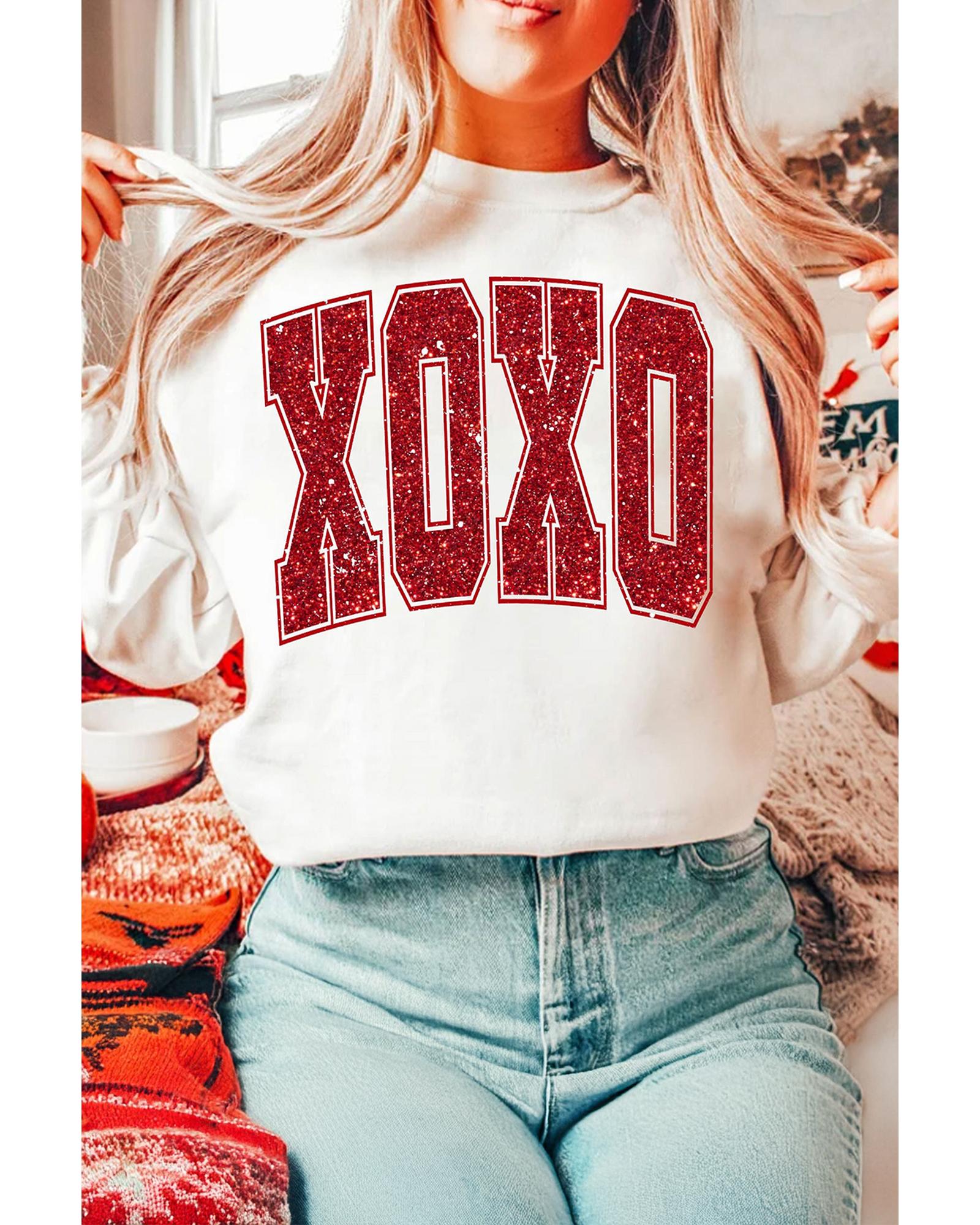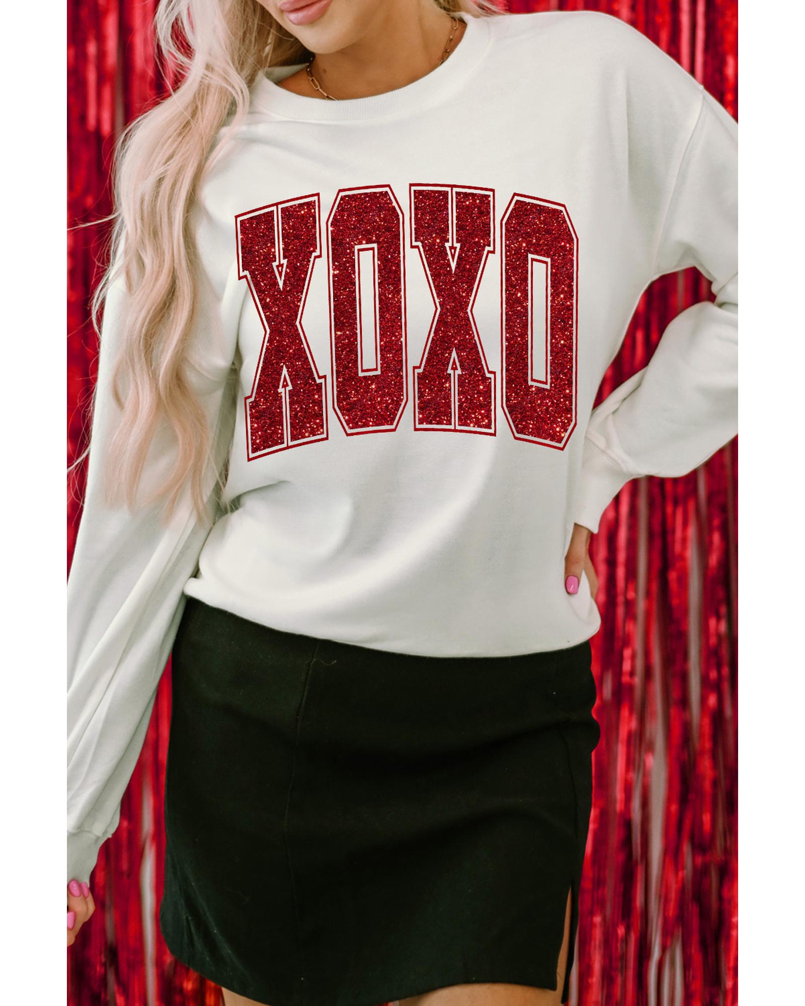 White Glitter XOXO Graphic Crewneck Valentines Pullover Sweatshirt